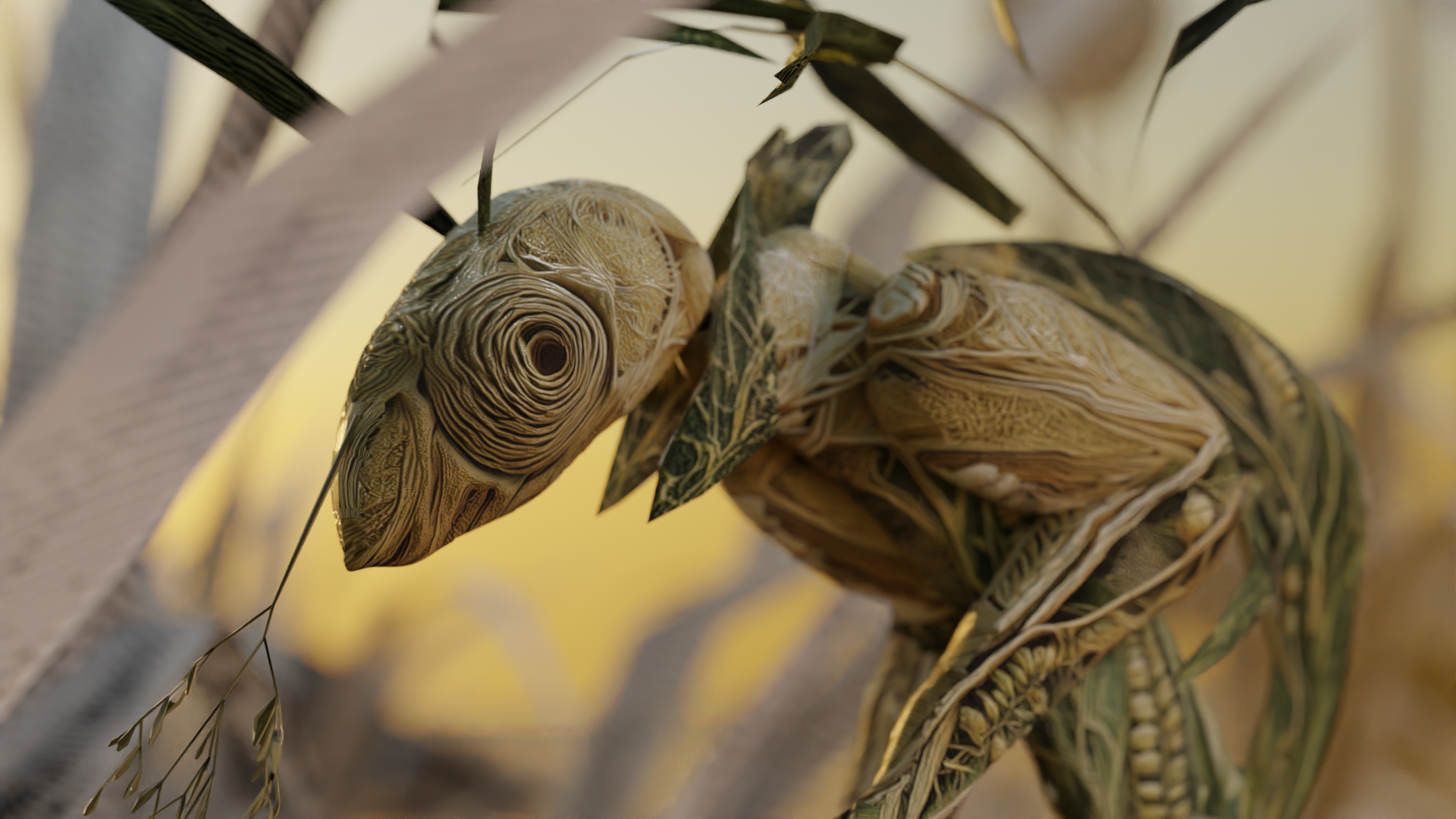 The first time I saw Seed Wisdom, it made me think of a goddess from an indigenous community—her posture, the color tones, and the ritualistic movement. It didn’t feel like a data object or a scientific result. A sense of deep empathy was created through this piece. A seed, not as a commodity, but as an object of veneration. There’s something deeply humble in this gesture. Seeds of food, seeds of life, seeds of future worlds.